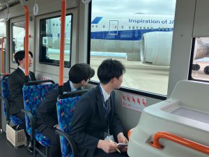 2026年2月17日(火)「ANAの空港業務を学ぶ」目的のもと、中部国際空港にてANA中部空港(株)様の「空港業務いろはセミナー」を実施しました。ANAグループの(株)ANA総合研究所様と本大学は、2017年10月に連携協力に関する協定を結んでおり、今回のセミナーもその一環となります。本セミナーには航空業界への就職を志望する3年生7名が参加し、セミナー担当者と各部門の担当者から業務紹介(貨物サービス部門・オペレーション部門・グランドサービス部門・旅客サービス部門)を受けた。その後、専用バスで移動し、旅客機の近くでグランドハンドリングの作業を見学した。卒業生でグランドハンドリング部門の赤津友規さん(健康スポーツ科学科 2024年度卒業生)から、「作業1つ1つに資格が必要で、資格がないと仕事をすることができない。資格を取得するとできることが増え、自分自身の成長と仕事に対するやりがいを感じる」との言葉が印象的でした。また、接客・旅客カウンター、オペレーションルームも見学させていただき、説明者のお話に真剣に耳を傾け、学生は積極的にメモを取っていました。参加した学生からは、「インターンシップにも参加したが、改めて航空業界で働く自分の姿を明確にできた」等航空業界で働くことへの思いを強める貴重な機会となりました。今回のセミナーは、航空業界を志望する学生、進路をこれから決めていく学生達にとって、有意義な時間となった。今後も学生達にとって価値ある活動の実施に努めてまいります。